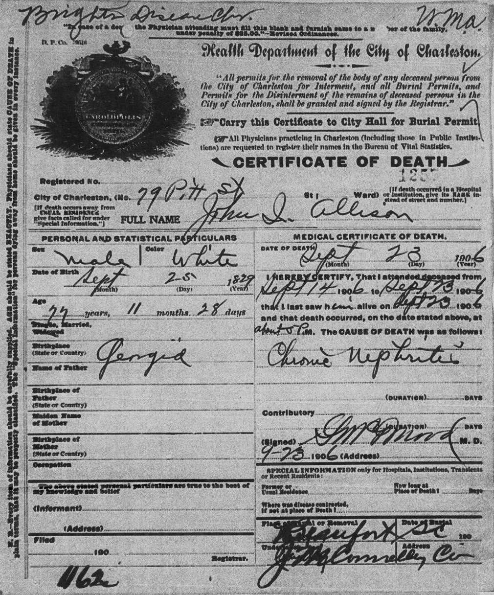 Center, Mary Lantha - Allison - Death Certificate - 1923