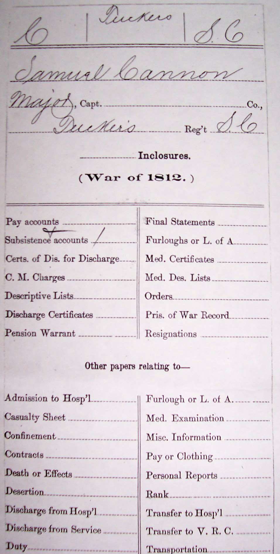 Cannon, Samuel - Major - War of 1812 Payroll - 1814